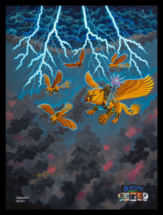 Stylistically, Gadu is an artist who truly stands alone. It is impossible to mistake a Gadu artwork, between his bold and colorful compositions and the massive size that he prefers to paint in. He really brings something unique and flavorful for Sorcery's Alpha debut.