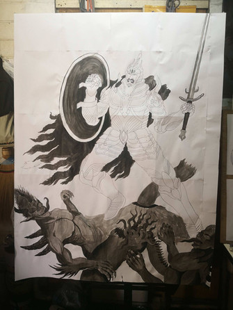 Gadu Duaso: Our agreement with Sir Erik regarding the required size of Sorcery painting is A3 size (Sketch Pad Size), but I told him that I don’t have a whole-body Character/Creature painted on A3 size. So, I asked his permission that I have to paint the approved design I submitted on 121.92 cm x 91.44 cm (48 in x 36 in) so that I can render and capture the details very well.