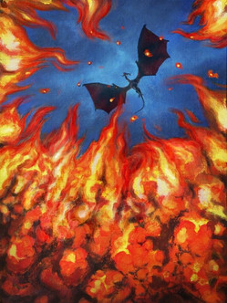 Lindsey Crummett: Erik was never overly descriptive with his briefs as I know he wanted to leave the artist a lot of room to play, which I really appreciated. I believe the brief was something along the lines of; a huge, old dragon perched atop a mountain. My process consisted of starting off finding a lot of animal reference. This is why I love dragons, I find that they’re an amalgamation of so many different animals! I researched iguanas, horses, bats and birds of all kinds and used them as inspiration and anatomical reference. I then did a sculpture in Z-brush as I’m very comfortable sculpting, and then I can really play with the best angle that would make you feel the size of the dragon. From there I used the sculpture to create a Photoshop digital painting. I didn’t get too detailed as I knew this would be mainly for lighting and tone reference for the final oil painting.