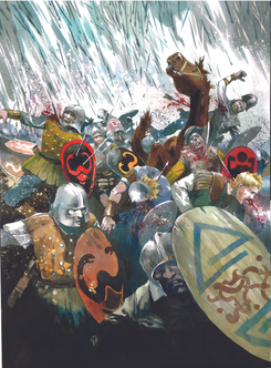 I'm also happy with "Rain of arrows", both colored and tragic. A part of the pleasure to work on this project, is that usually, I'm pretty close to historical constraints, even when I create a sci-fi story, and heroic fantasy gives you the opportunity to feel completely free, to change medieval or antique references into something new; thanks Erik for that. His direction was both precise and gives you a lot of space, always with the possibility to discuss.